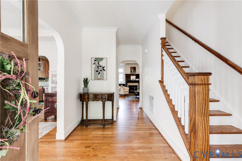 Beautiful Craftsman-style home in the highly desirable Bon Air area featuring 4 bedrooms and a first-floor primary suite. Recent updates include two new HVAC systems (June 2025). This home is filled with character and charm, showcasing custom trim work, arched openings, and stunning early 1900s stained glass accents in the foyer and great room, along with antique sconces and a decorative mirror over the fireplace. The kitchen is well-appointed with granite countertops, stainless steel appliances, and a bright eat-in area surrounded by windows that allow natural light to pour in. A formal dining room with elegant wainscoting provides the perfect space for entertaining. Hardwood floors run throughout the main level living areas. The impressive great room features a fireplace, vaulted ceiling with balcony overlook, and unique architectural details that make the space truly stand out. The first-floor primary suite offers a spacious walk-in closet, and a private en-suite bath complete with a soaking tub and walk-in shower. Upstairs, you will find three oversized bedrooms along with a versatile office/flex space, ideal for working from home, a study area, or hobby room. Enjoy outdoor living with a rear deck overlooking a beautifully landscaped backyard, complete with a pergola and herb garden-perfect for relaxing or entertaining. Additional highlights include a side-entry oversized two-car garage and a convenient location just minutes from shopping, dining, and top-rated schools.